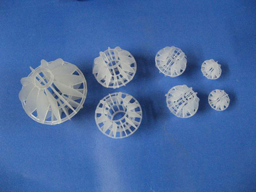 采用聚丙烯塑料制成球狀,在球中部沿整個周長有一道加固環(huán),環(huán)的上下各有十二片球瓣,沿中心軸呈放射形布置,適用于二氯化碳脫氣塔,接觸反應(yīng)塔等裝置。